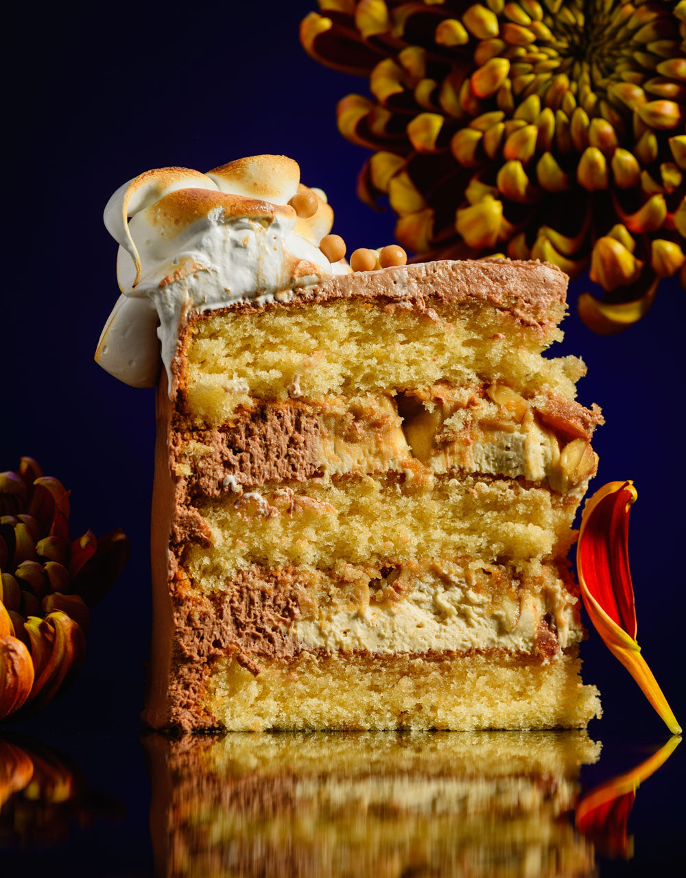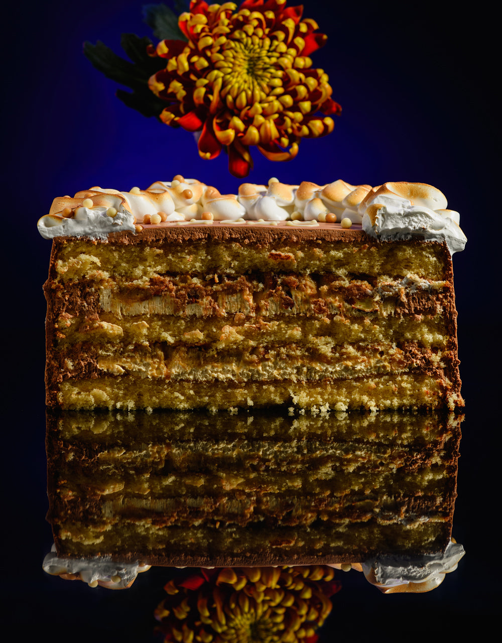 E festojmë këtë fundvit të katërt të Rubit duke risjellë elemente të pëlqyera nga tortat tona të mëparshme dhe duke i pasuruar me disa elemente nostalgjike: aroma e portokallit të pjekur mbi sobë, merenget e thekrisura e bajame të pjekura.