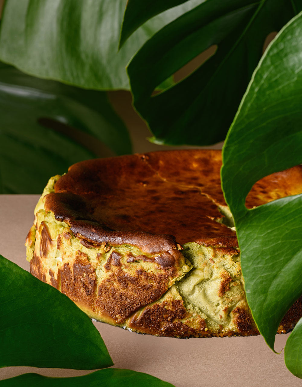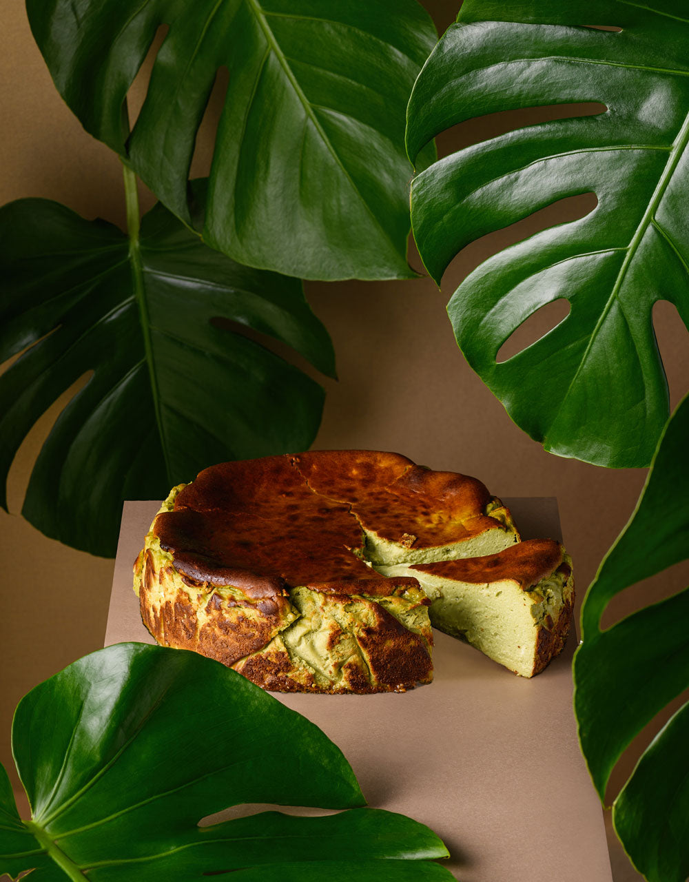 Matcha jonë superiore, Matcha Repulic nga Uji, Kyoto, i shton një shije lehtësisht delikate Umami këtij cheesecake shumë të freskët e kremoz.